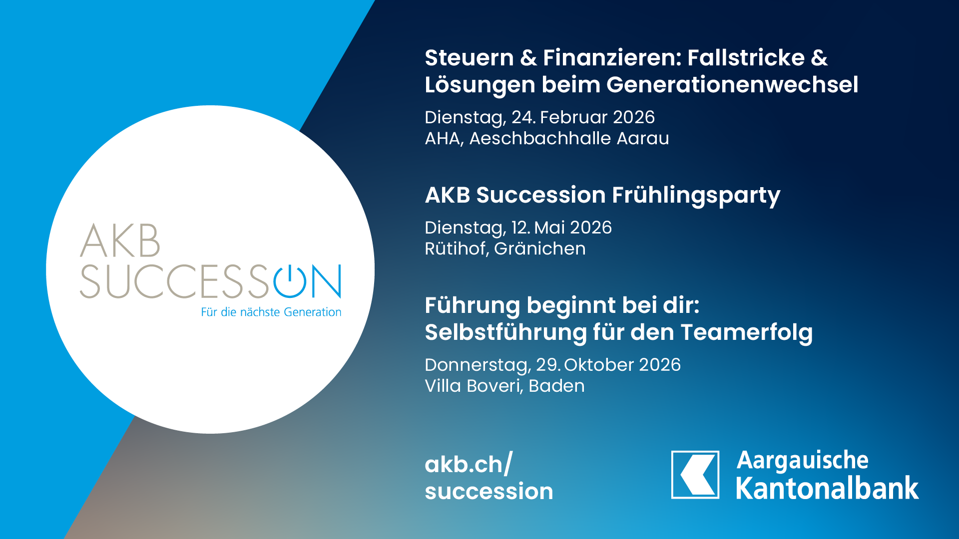 AKB Succession ist eine Plattform, welche voll auf die Bedürfnisse der Nachfolgerinnen und Nachfolger ausgerichtet ist. Wir fördern die Vernetzung und den Austausch unter designierten Nachfolgerinnen und Nachfolger.